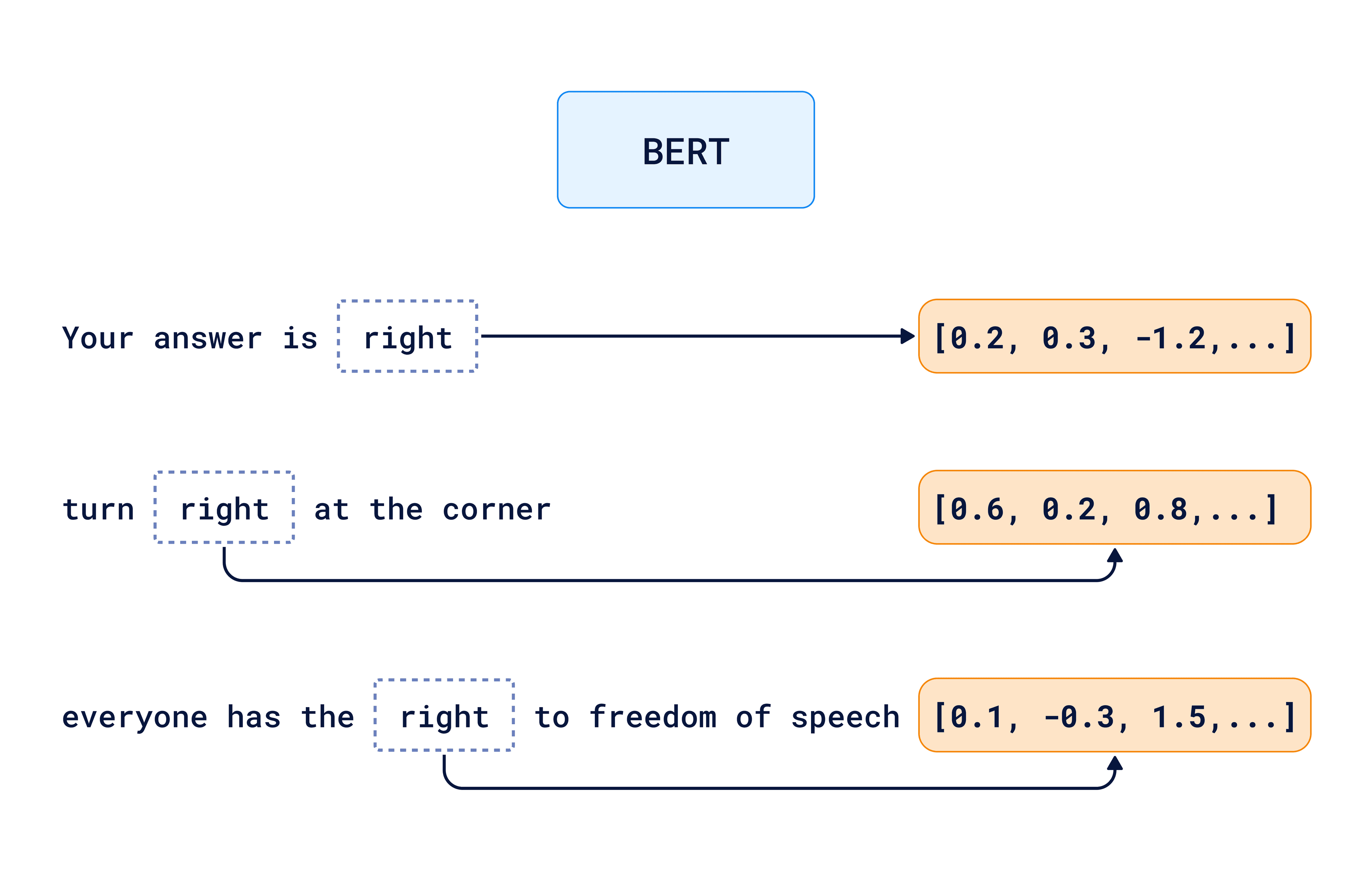 然而,这些模型仍然具有局限性。它们根据单词在文本中的使用情况,为每一个单词生成一个单一向量。这就意味着right 一词的所有细微差别都被混合到一个向量表示中。这些信息不足以完全理解上下文。
