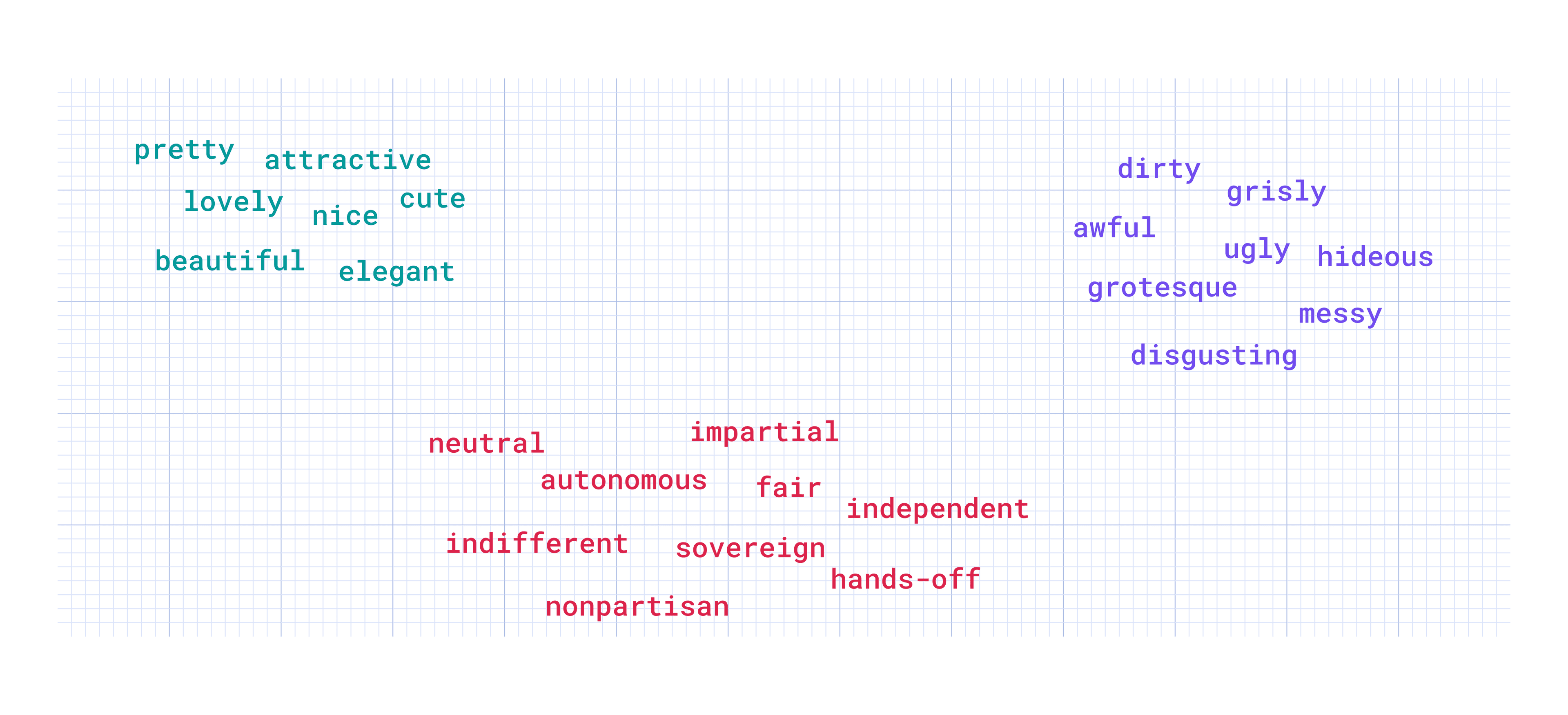 在embedding 空间中,同义词往往出现在相似的上下文中,并最终具有相似的embedding,这个空间是一个足够聪明的系统,可以理解 漂亮 和 好看 都是在夸一个人,不需要你明确说明。